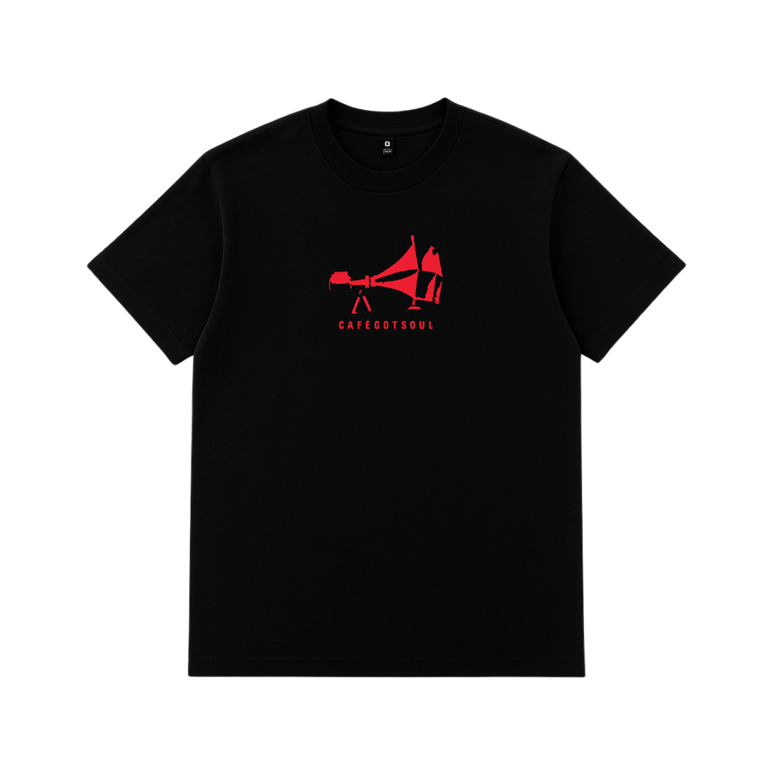 The Café Gotsoul brand amplifies music output with this sharp, sound system front graphic in red on a black essential tee - a cotton-blend, easy everyday wear. Captured on the back, a “Voice of Montreal” graphic pays tribute to a city’s community expression uniquely shaped by culture.